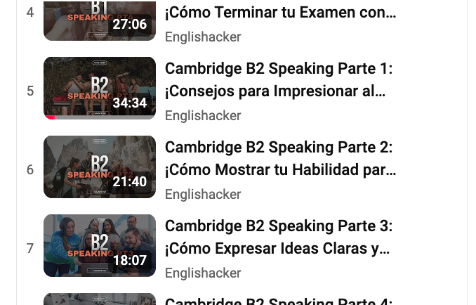 Estos walkthroughs están disponibles en mi canal de YouTube, organizados en una lista de reproducción súper práctica. Si quieres escuchar las respuestas, entender cómo estructurarlas y aprender tips que harán brillar tu inglés, este recurso es para ti.